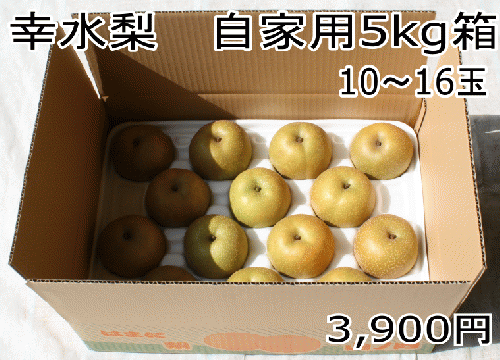 地元で人気の自家用幸水梨をたっぷり 5kg 入ったダンボール箱でお届けします。